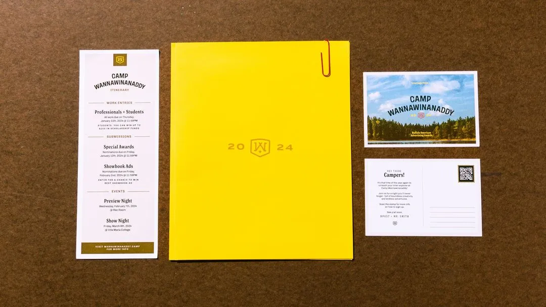 When the AAF Buffalo chapter approached us to help reimagine their annual American Advertising Awards (AAA), we partnered with dPost to craft a night that would leave a lasting impression. The result was Camp Wannawinanaddy, a camp-themed celebration that combined humor, nostalgia, and creativity to deliver an unforgettable experience. From the initial concept to the final applause, every element of the event was designed to reflect the spirit of camaraderie and innovation within the advertising community.