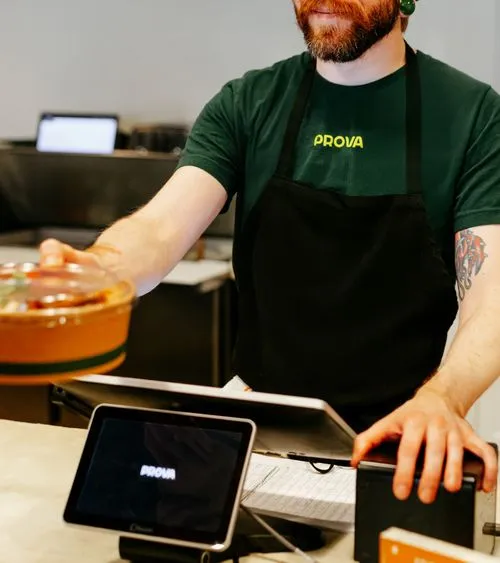 Our work focused on building a cohesive identity that reflected Prova's fresh and inviting ethos. We designed a modern interior aesthetic featuring green tones and intentional greenery, creating a welcoming environment that brought warmth and vibrancy to the space. Thoughtful wayfinding and signage ensured a seamless customer experience, while the menus and stationery reflected the brand's clean, high-quality style. The microsite complemented these efforts, highlighting the menu and catering options, though the physical and in-store elements were the heart of the brand's story.